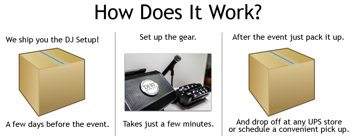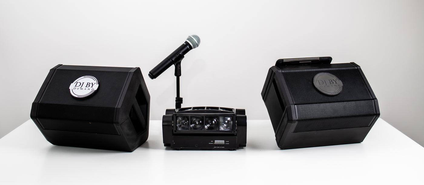 Our DJ by Demand package comes with everything you need to Be The DJ! Includes powerful professional speaker(s). Over 500 built in songs, a wired mic, and the ability to play your playlists by logging into your favorite streaming service. Wireless mics, and party lights are an option as well.